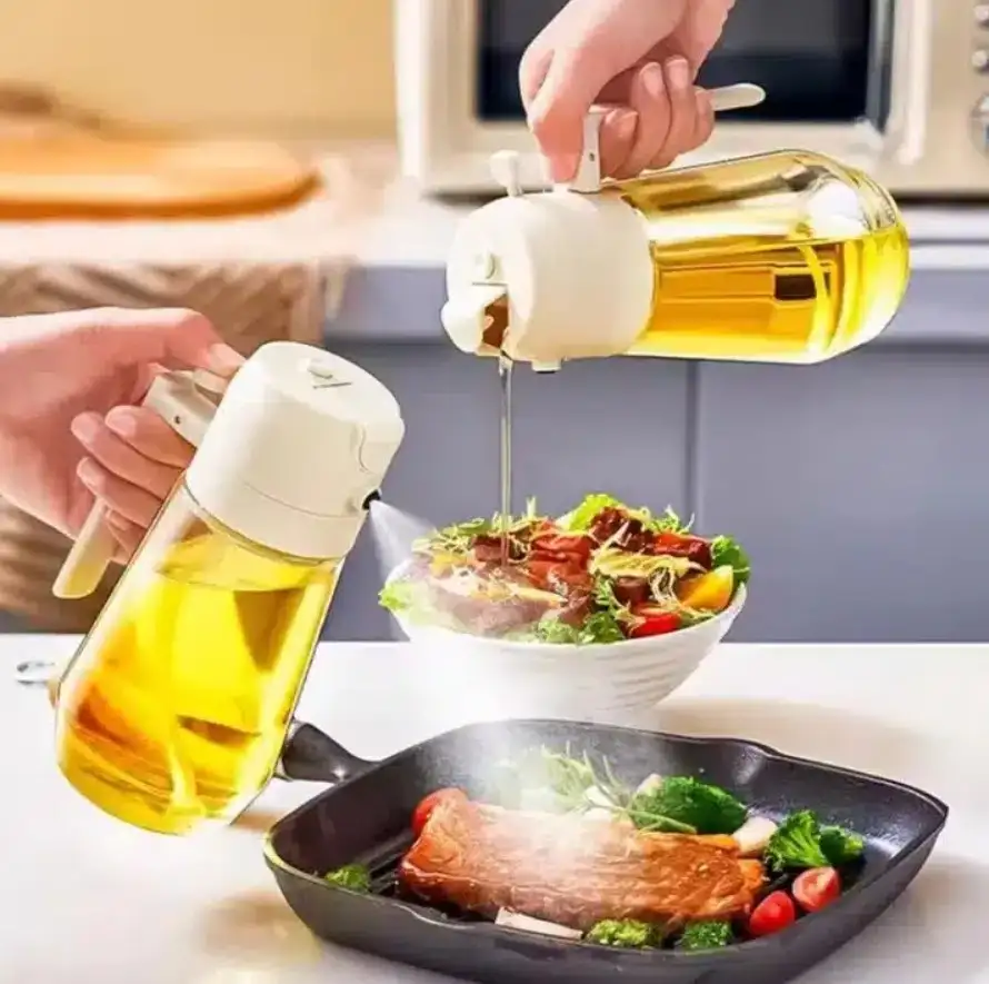 রান্নার তেল পরিমাপে ও স্প্রে করতে 2 in 1 Oil Spray Dispenser Bottle.