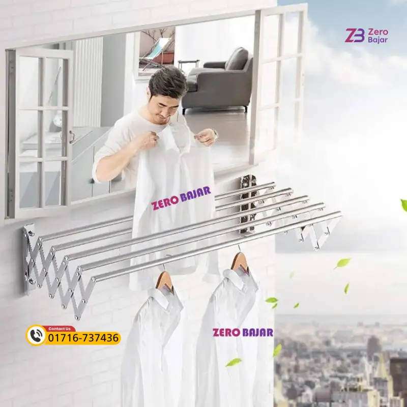 Wall Grill Mounted Clothes Hanger Foldable SS